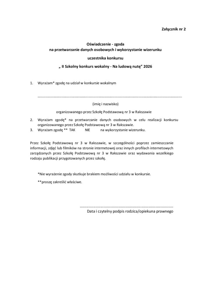 II Szkolny Konkurs Wokalny „Na ludową nutę”